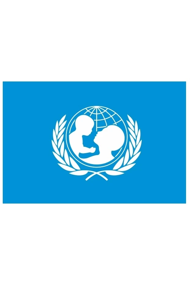 Официальный флаг ЮНИСЕФ представляет собой полотнище прямоугольной формы, окрашенное в светло-голубой цвет. На флаге Фонда Организации Объединенных Наций помощи детям в центре полотна помещена несколько измененная эмблема ООН, представляющая собой плоское изображение глобуса светло-синего цвета с белыми линиями параллелей и меридианов.