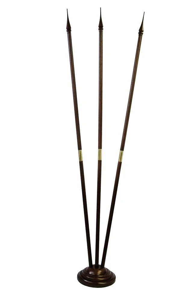 Древко. Длина древка составляет 2,5 м, диаметр древка 3,5 см. Нижний край древка имеет проточку - часть древка длиной 3,5 см, меньшая по диаметру (3 см), для установки древка в основание. На верхнем и нижнем срезах древка установлены футорки с резьбой М6 для ввинчивания навершия и установки в основание. Древки изготавливаются разборными и имеют латунную гильзу. Вес верхней части - 0,82 кг. Вес нижней части - 0,84 кг. Вес цельного древка 2,5 м - 1,66 кг.