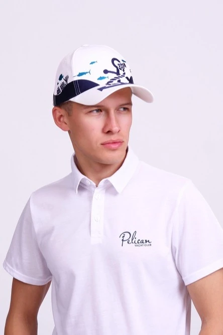 Модель. Купол бейсболки состоит из пяти клиньев, четыре из них имеют отверстия для вентиляции. Козырек бейсболки типа "сэндвич" сшит из ткани контрастного цвета. Регулируемая металлическая застежка.