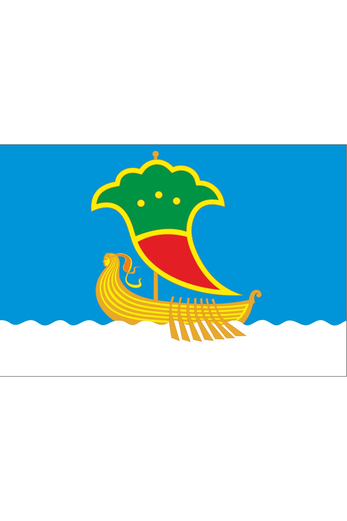 Символические значения. В основе полотнища - челн. Он напоминает о названии и воплощает в себе неутомимое стремление вперед всеми возможными путями, борьбу с препятствиями и усмирение разрушающих сил природы. Нос челна дополнен изображением девушки, хранительницы домашнего уюта и очага.
