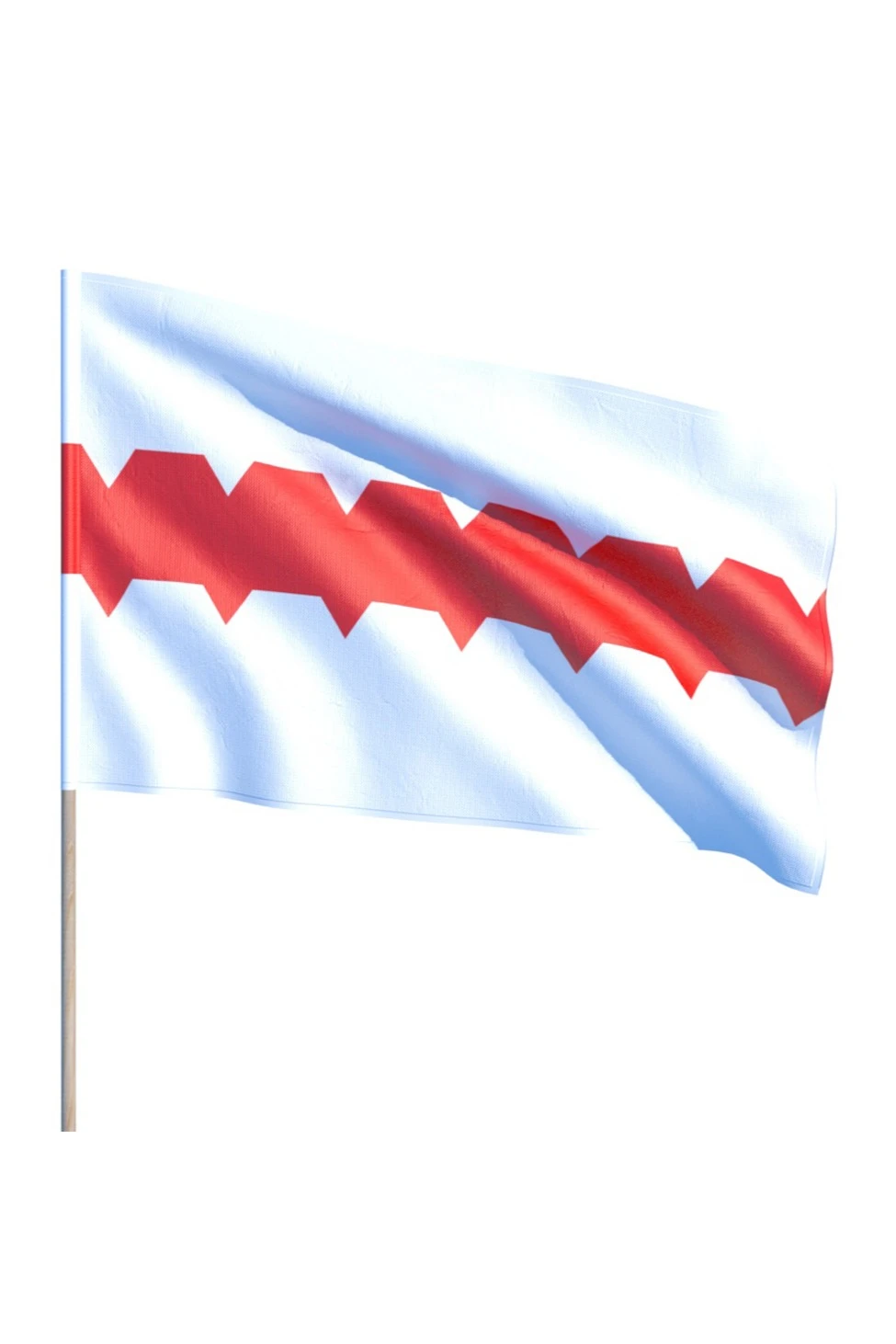 В 2014 было законодательно утвержден ныне существующий флаг. Красная полоса крепостной стены на белом фоне.