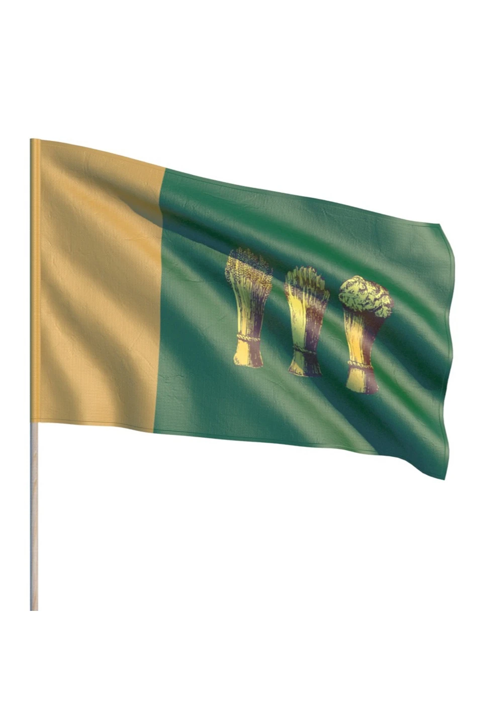 История и символика. Флаг города Пензы – это полотнище-прямоугольник стандартного для флагов соотношения сторон ширины к длине как два к трем. Фон полотна – зеленый (основная часть) и золотистый (полоса золотистого цвета расположена вдоль древка и составляет одну пятую часть длины прямоугольника). На флаге изображены три снопа, фрагменты композиции города Пензы, золотистого цвета. Оборотная сторона полотнища зеркально повторяет его лицевую сторону.