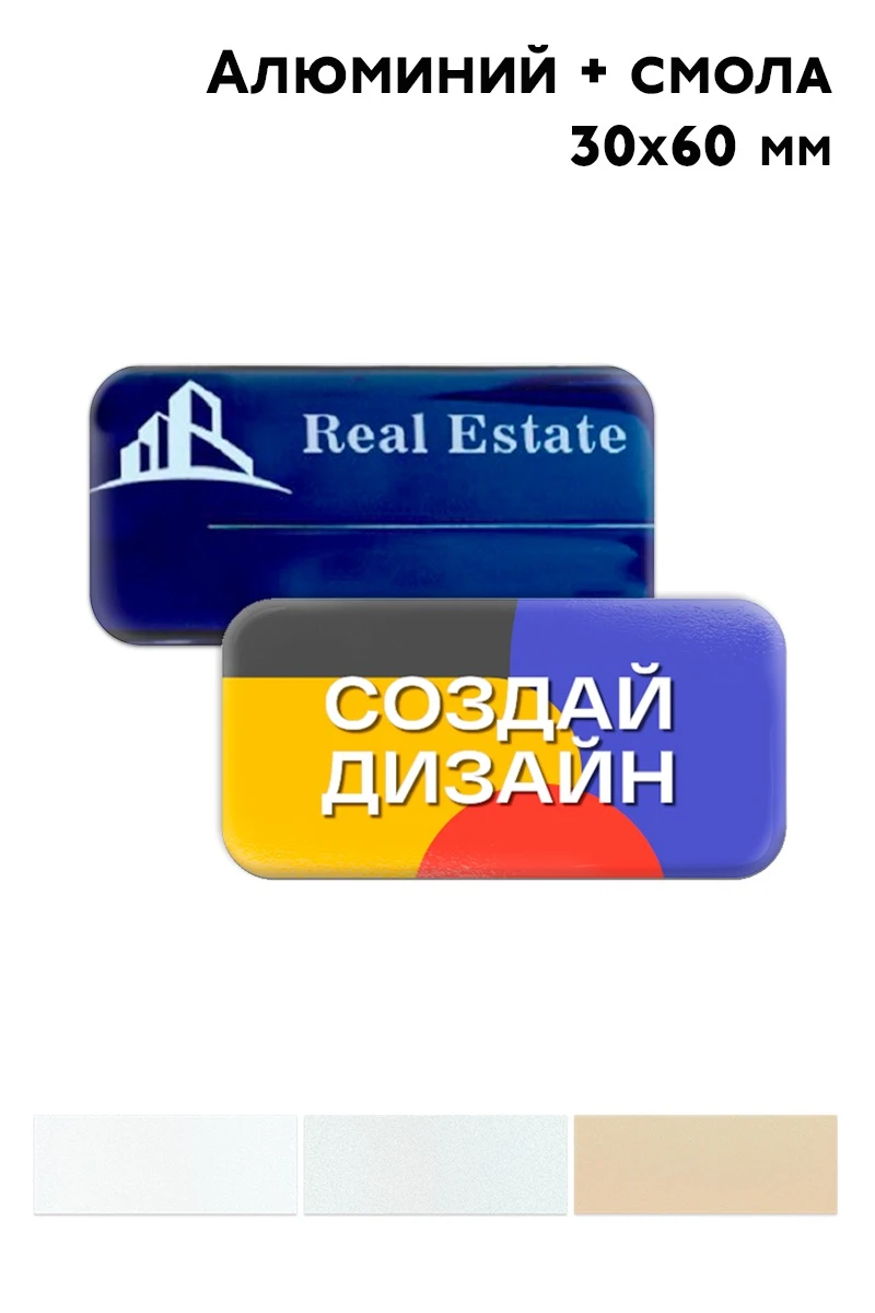 Описание. Бейджи прямоугольной формы без окна с закругленными углами. Бейдж с заливкой смолой.