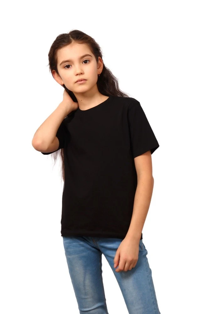 Модель. Прямой силуэт. Рукав короткий. Футболка имеет боковые швы без разрезов по низу изделия. Обработка горловины эластичной рибаной (специальная тканая резинка) в цвет футболки. Форма ворота О-образная.