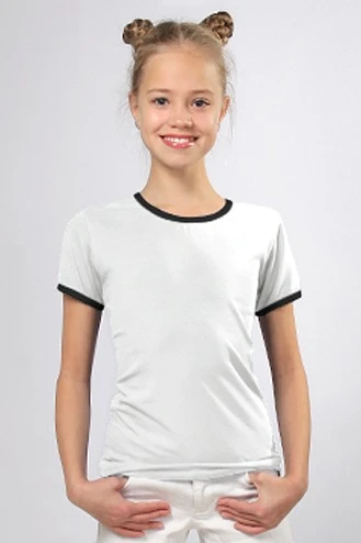 Модель. Прямой силуэт. Рукав короткий. К нижней части рукава пришивается декоративная вставка в цвет футболки или другого цвета. Футболка имеет боковые швы без разрезов по низу изделия. Обработка горловины руликом (кантом) из основной ткани в цвет футболки или другого цвета. Форма ворота О-образная. Возможно бесплатное комбинирование деталей разных цветов (например, рукава могут отличаться по цвету от остальных деталей).