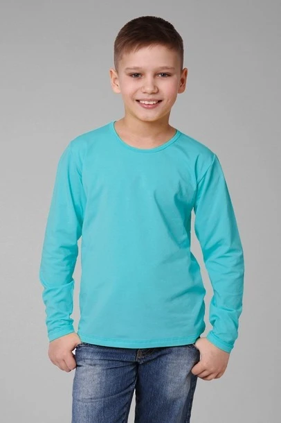 Модель. Прямой силуэт. Рукав длинный. Лонгслив имеет боковые швы без разрезов по низу изделия. Обработка горловины руликом (кантом) из основной ткани в цвет лонгслива или другого цвета. Форма ворота О-образная. Возможно бесплатное комбинирование деталей разных цветов (например, рукава могут отличаться по цвету от остальных деталей).