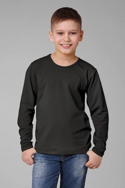 Лонгслив Атлетик Плюс детский однотонный черный (хлопок)