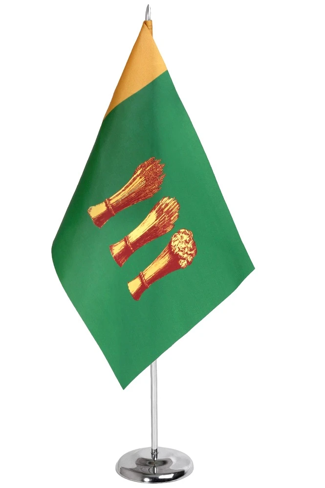 История и символика. Флаг города Пензы – это полотнище-прямоугольник стандартного для флагов соотношения сторон ширины к длине как два к трем. Фон полотна – зеленый (основная часть) и золотистый (полоса золотистого цвета расположена вдоль древка и составляет одну пятую часть длины прямоугольника). На флаге изображены три снопа, фрагменты композиции города Пензы, золотистого цвета. Оборотная сторона полотнища зеркально повторяет его лицевую сторону.
