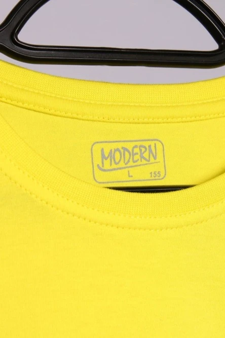 Модель. Прямой силуэт. Рукав короткий. Без боковых швов и разрезов по низу изделия. Обработка горловины эластичной рибаной (специальная тканая резинка) в цвет футболки. Форма ворота О-образная.