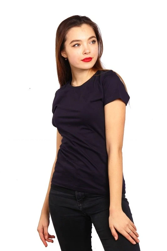 Футболка Премиум женская (Modern) однотонная чёрно-синяя (хлопок)