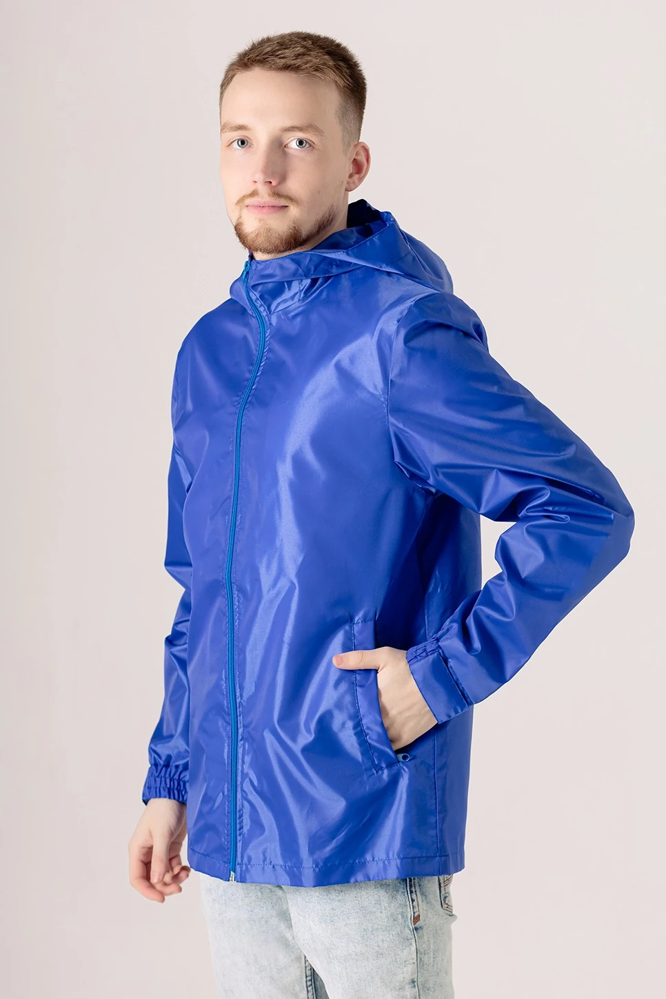 Модель. Ветровка Рэйн прямого силуэта с длинным рукавом с манжетой на резинке с липой. Ветровка на молнии без подклада. Капюшон пришивной, на верхней части у края капюшона пришита резинка для удобства. Два прорезных кармана в листочку на молнии. Низ изделия прошит в подгибку, без фиксаторов.