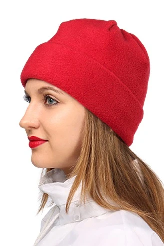 Шапка Вэст флисовая двухслойная взрослая, однотонная красная
