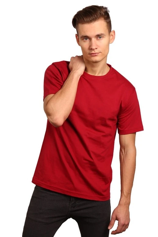 Модель. Прямой силуэт. Рукав короткий. Без боковых швов и разрезов по низу изделия. Обработка горловины эластичной рибаной (специальная тканая резинка) в цвет футболки. Форма ворота О-образная.