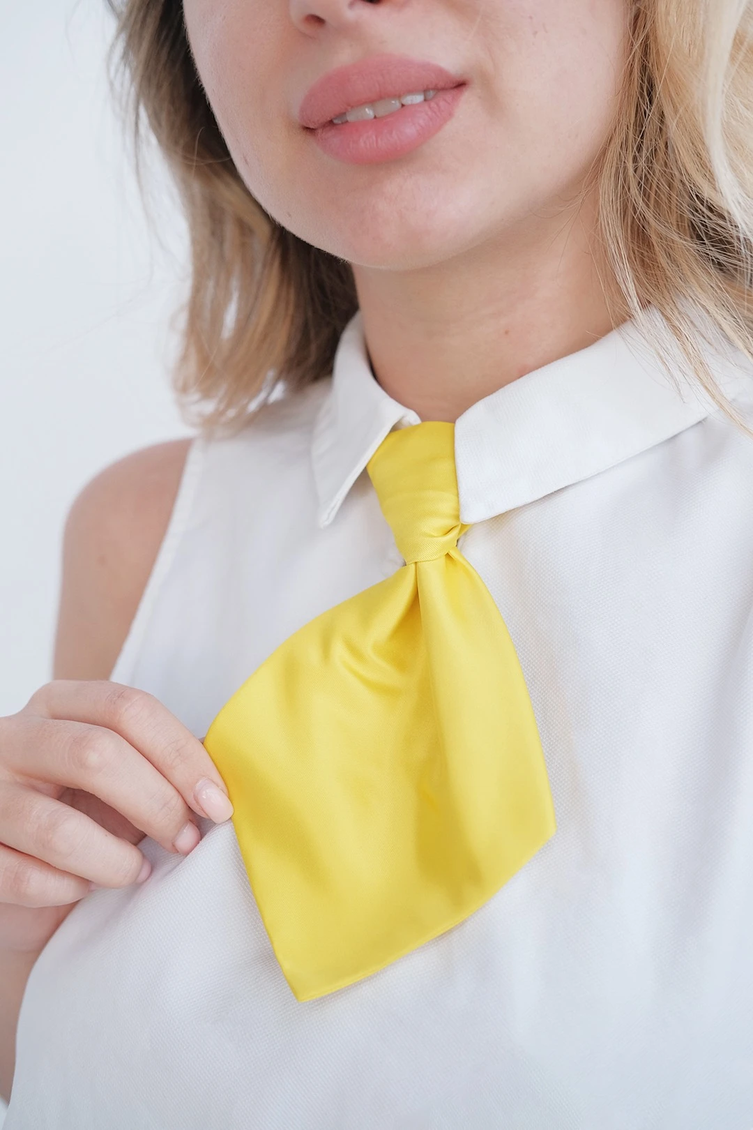 Галстук Аура призван быть элегантным дополнением женской деловой униформы. Компания "Инари" выпускает эти притягивающие взгляд аксессуары в семи однотонных цветовых исполнениях.