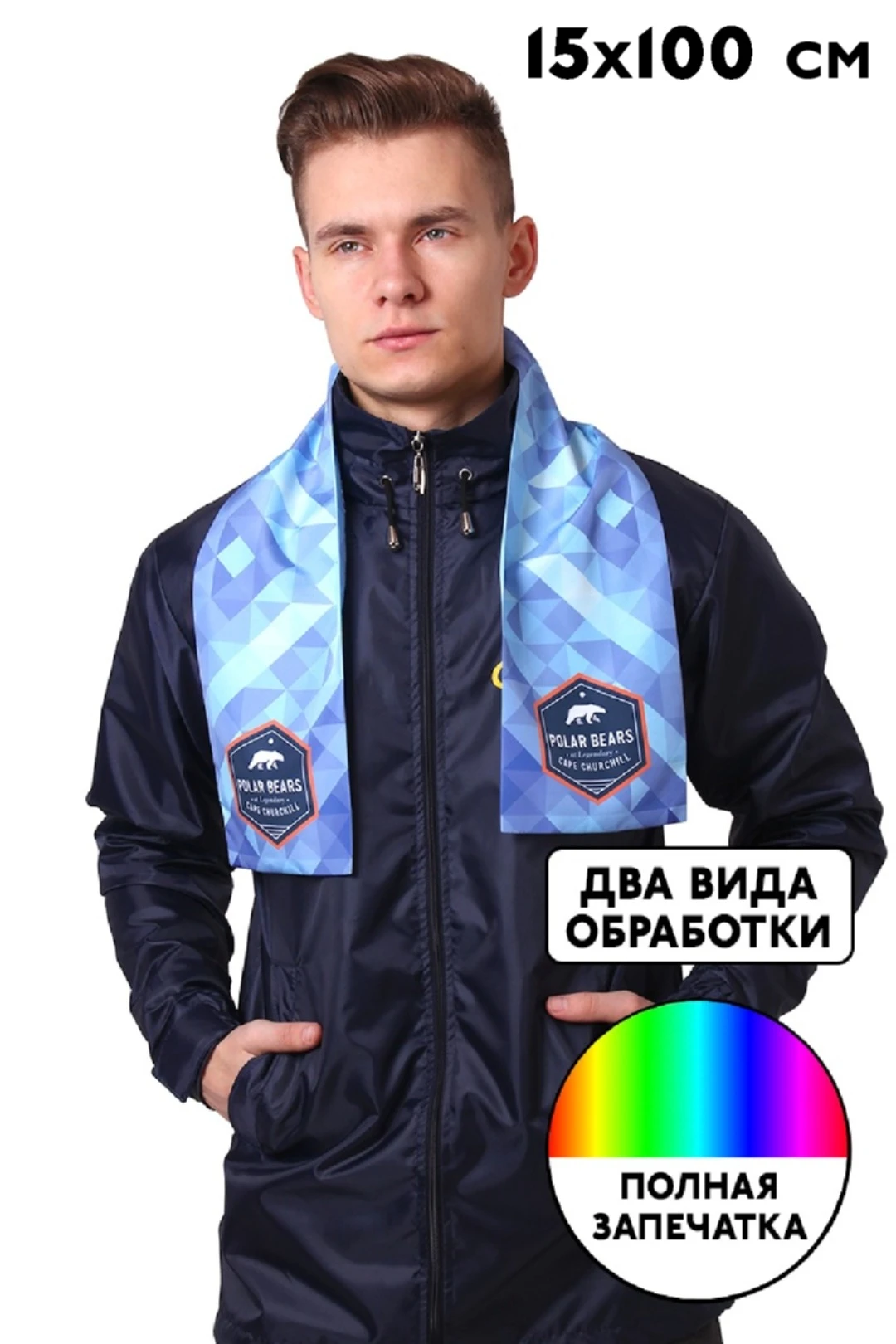 Особенности нанесения: Полноцветное нанесение осуществляется методом сублимации на все стороны материала. Изображение размещается в соответствии с лекалом. Нанесение на шарф входит в стоимость шарфа.
