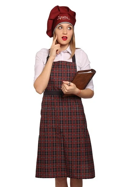 Модель: Фартук фигурной формы без разреза и карманов. За дополнительную плату фартук может быть пошит с одним карманом 20х35 см, либо двумя карманами 17х20 см. Фартук по периметру обработан швом вподгибку. Шейная петля и пояс выполнены из основной ткани. Шейная петля без пластикового регулятора. По желанию клиента шейная петля может быть выполнена с пластиковым регулятором (оплачивается дополнительно). За дополнительную плату фартук может быть удлинен до 15 см.