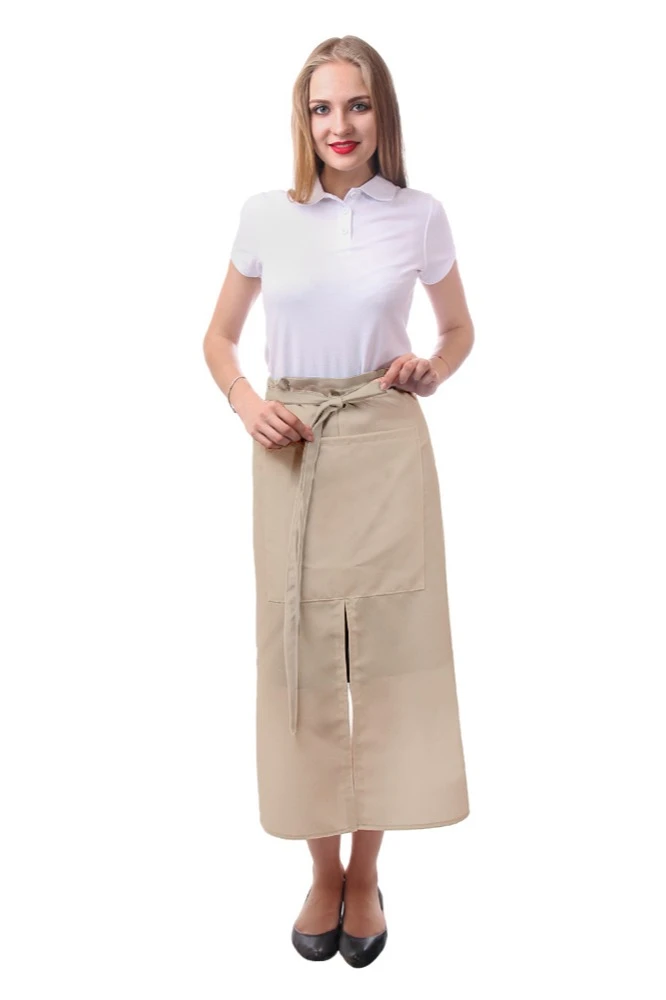 Фартук Бармен поясной с двумя карманами, однотонный бежевый