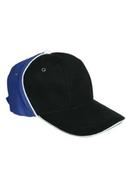Модель. Купол бейсболки состоит из шести клиньев, без лобового шва. Вентиляционные отверстия с люверсами, либо обшиты нитками. Верхняя часть козырька и передняя часть бейсболки выполнены в черном цвете. Низ козырька и оставшаяся часть бейсболки – другого цвета. По краю козырька и линии пришива черных деталей - отделочный кант белого цвета. Металлическая застежка для регулировки размера.