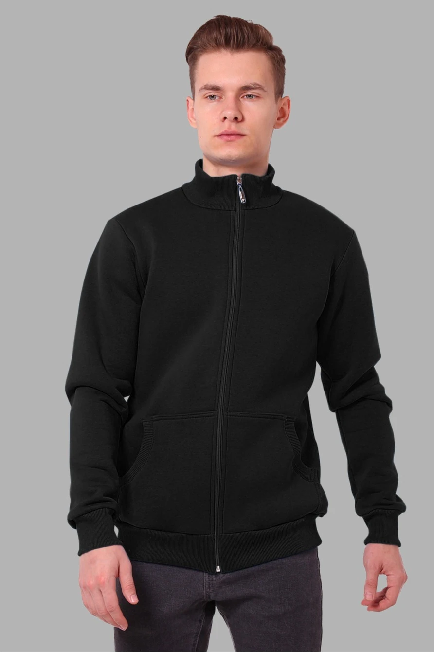 Модель. Прямой силуэт. Толстовка на молнии. Длинные рукава. Низ толстовки и рукавов, а также горловина обработаны тканью кашкорсе (специальная тканая резинка) в цвет толстовки. Толстовка без капюшона. Два раздельных кармана по типу кенгуру. Для большего удобства при открывании и закрывании на молнии установлены пуллеры.