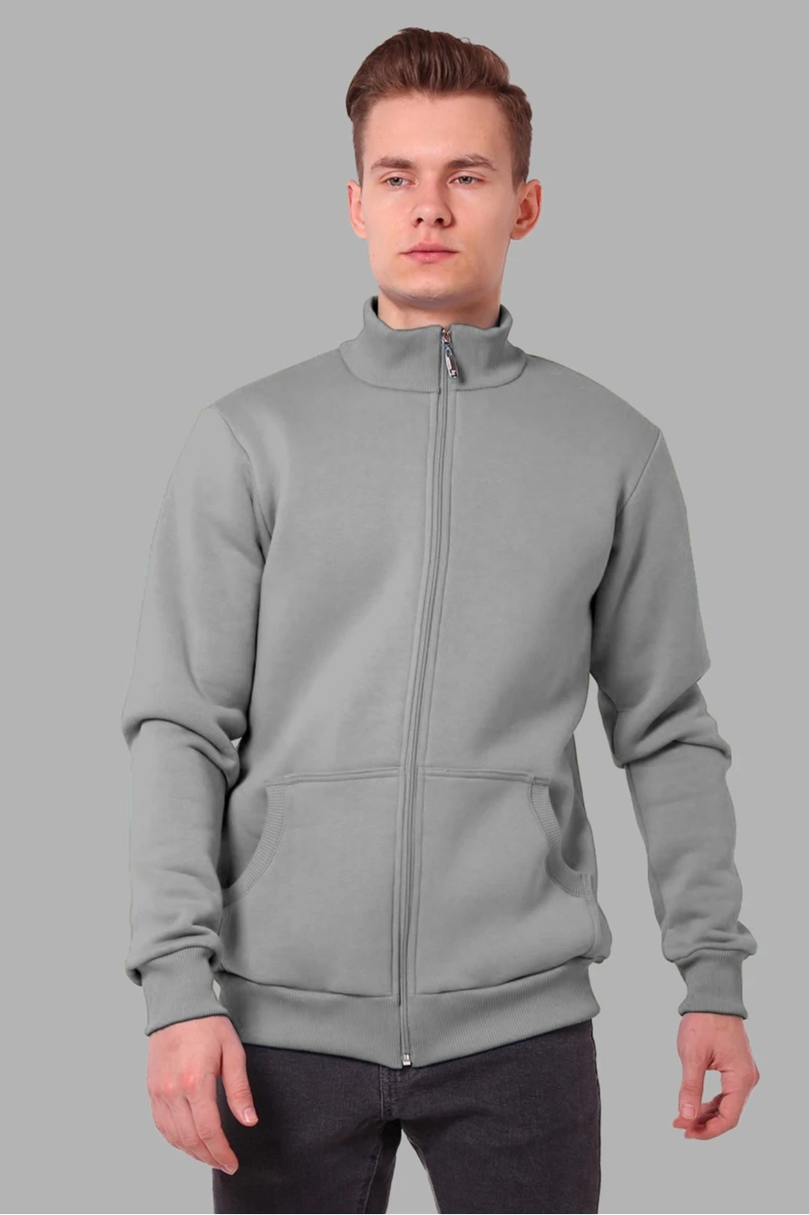 Модель. Прямой силуэт. Толстовка на молнии. Длинные рукава. Низ толстовки и рукавов, а также горловина обработаны тканью кашкорсе (специальная тканая резинка) в цвет толстовки. Толстовка без капюшона. Два раздельных кармана по типу кенгуру. Для большего удобства при открывании и закрывании на молнии установлены пуллеры.