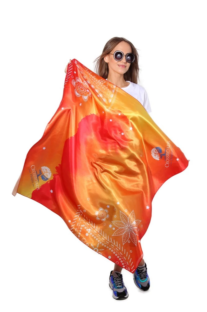 Платки — эффектный промо аксессуар. Сегодня это один из самых популярных и востребованных инструментов в промоушене. Это недорогой и привлекательный способ выделить своих промоутеров на мероприятии. Платок с логотипом может стать ярким отличительным элементом в образе сотрудников вашей компании. Его можно надевать на голову или повязывать на шею. Этот способ повысит узнаваемость вашего бренда и станет дополнительной рекламой. Универсальность платка позволяет носить его в качестве галстука или накидки, использовать как пояс на брюках или джинсах.