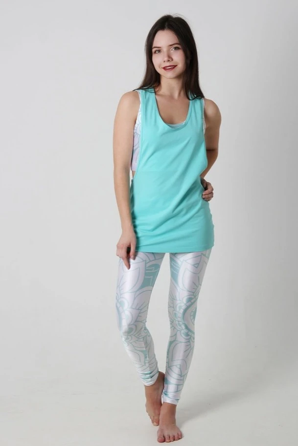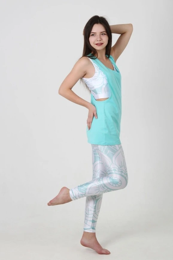 Материал: для топа и легинсов бифлекс спорт (100% полиэстер, плотность 260 гр./м²), для майки кулирная гладь с лайкрой (95% хлопок, 5% лайкры; плотность 170 гр./м²).