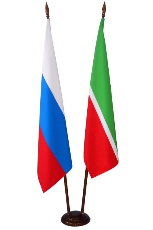 Изделия поставляются в комплекте. В состав комплекта входит: подставка напольная деревянная на 2 штока, флаг РФ печатный, флаг Татарстана печатный.