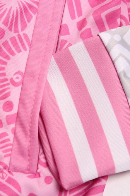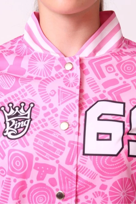 Модель. Прямой силуэт, без капюшона, без подклада. Длинные рукава с манжетами из сублимационной ткани сандвич браш. Низ бомбера и воротник с закругленными углами также выполнены из сублимационной ткани сандвич браш. Вариант застежки бомбера на выбор: на семь металлических кнопок или на молнию. Два боковых кармана в листочку без молнии.