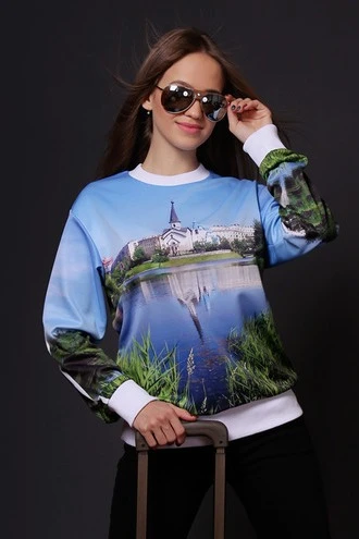 Сублимация. Полноцветная печать осуществляется на всей поверхности свитшота в процессе производства. Изображение располагается в соответствии с лекалом. Нанесение входит в стоимость свитшота.