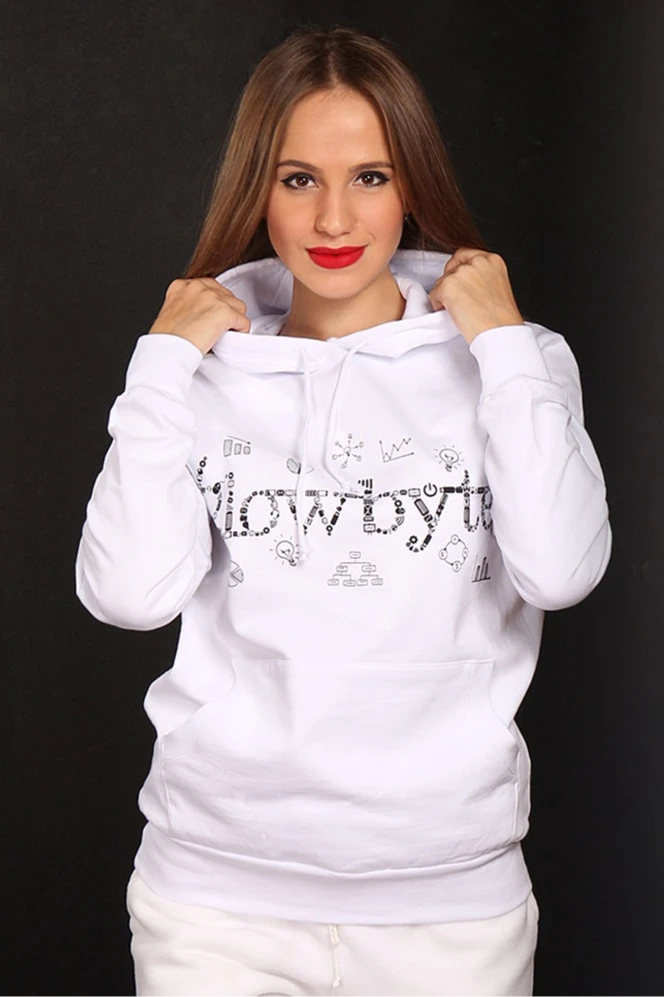 Модель. Толстовка унисекс с прямым силуэтом. Длинные рукава с манжетами. Манжеты рукавов и низ толстовки обработаны тканью рибана (специальная тканая резинка) в цвет толстовки. Толстовка с капюшоном и накладным карманом «кенгуру». В капюшон продет плоский шнур, у которого запаяны концевики. Капюшон с подкладом из кулирной глади в тон футера.