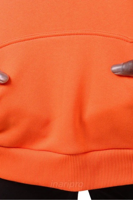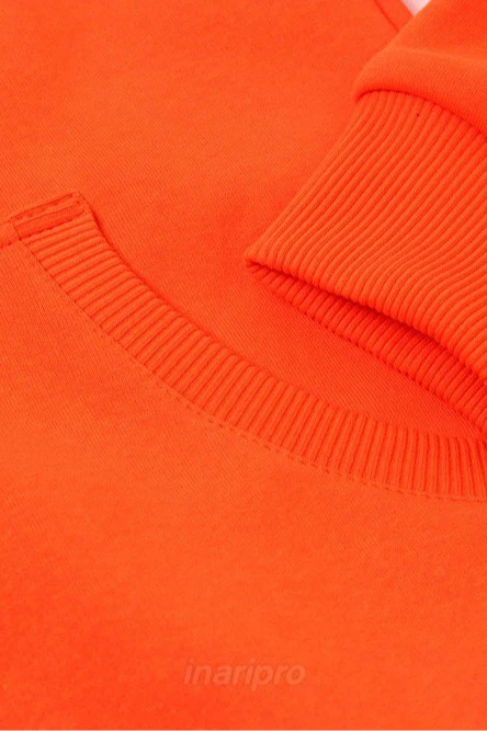 Модель. Прямой силуэт. Толстовка без молнии. Длинные рукава. Низ толстовки и рукавов обработаны тканью кашкорсе (специальная тканая резинка) в цвет толстовки. Один общий карман по типу кенгуру. Капюшон пришивной двухслойный, внутренний слой из однотонной кулирной глади с лайкрой стандартных цветов на выбор. У края капюшона продет плоский шнур стандартных цветов.