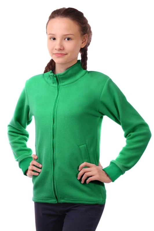 Толстовка Харисон флисовая без капюшона детская, однотонная зеленая