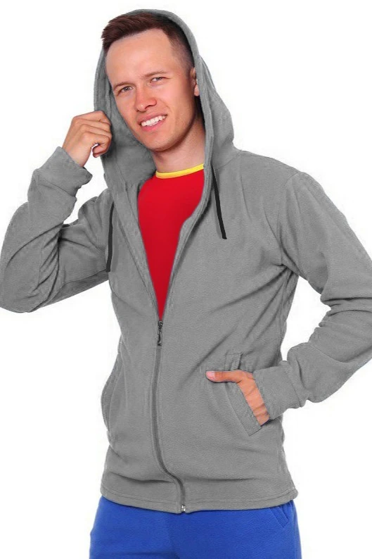 Модель. Прямой силуэт. Толстовка на молнии. Длинные рукава с манжетой из основного материала. Толстовка с пришивным капюшоном. У края капюшона продет плоский шнур стандартных цветов. Два прорезных кармана в листочку без молнии. Возможно бесплатное комбинирование деталей разных цветов (например, рукава могут отличаться по цвету от остальных деталей). Для большего удобства при открывании и закрывании на молнии установлены пуллеры.
