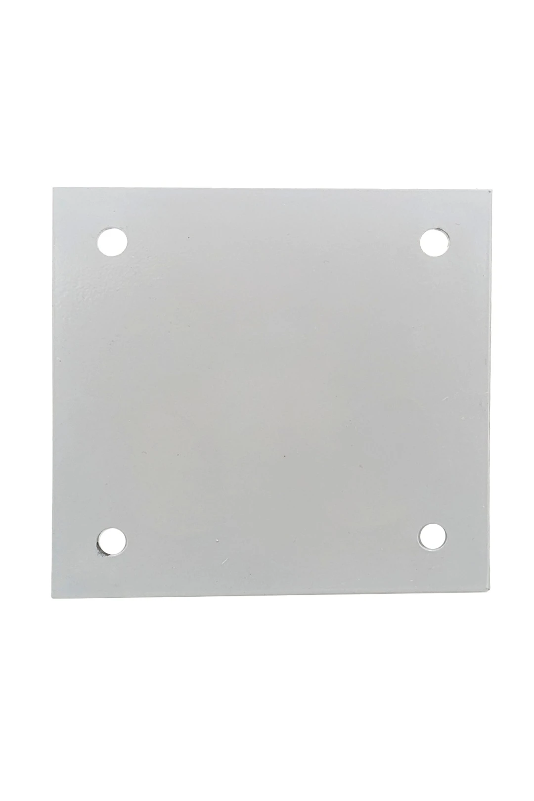 Форма, размер. Основание изготовлено из металла толщиной 3 мм, размер - 15х15 см. Штоки изготовлены из металла толщиной 2,5 мм. Длина штока составляет 15 см. Наружный диаметр - 3,2 см. Внутренний диаметр трубы - 2,8 см.