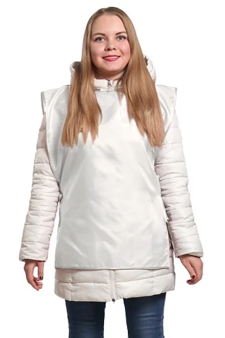 Модель: Накидка прямоугольной формы без карманов. Обработка края накидки швом вподгибку, горловина обрабатывается косой бейкой, завязки выполнены из брючной ленты белого или черного цветов, длиной 30 см.