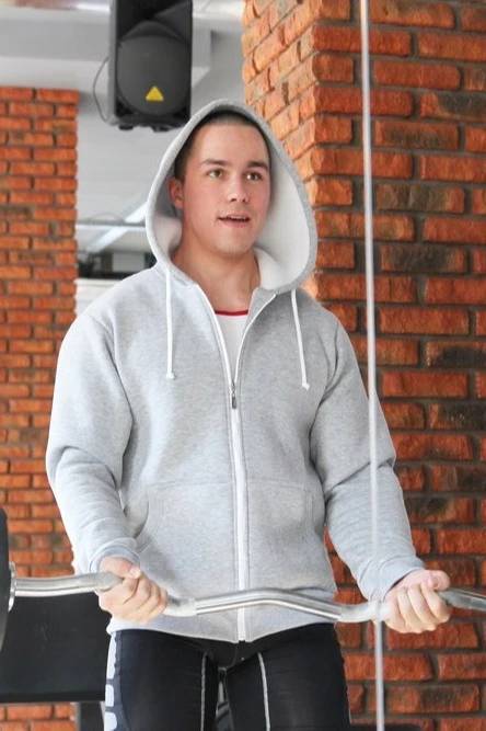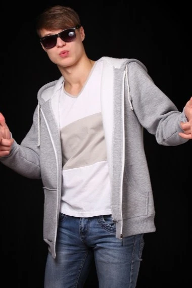 Модель. Балахон Рик прямого силуэта на молнии. Толстовка с длинными рукавами. По низу толстовки и рукавов прошита специальная тканная резинка кашкорсе в цвет балахона. Два раздельных кармана по типу кенгуру. Капюшон пришивной двухслойный, внутренний слой из однотонной кулирной глади с лайкрой стандартных цветов на выбор. У края капюшона продет плоский шнур стандартных цветов.