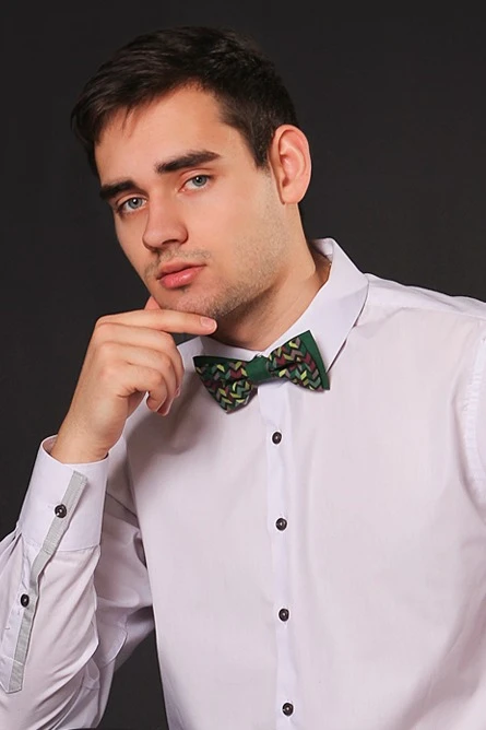 Модель: Галстук-бабочка. На шейную ленту из основной ткани крепится металлическая фурнитура (магнитная застежка и регулятор).