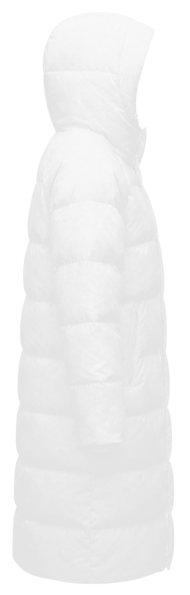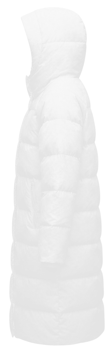 Модель. Пуховик прямого силуэта, с подкладом из дешайна с полной запечаткой, наполнитель синтетический пух и слайтекс 150 гр (один слой), а также дополнительный слой из ветрозащитной ткани. Пуховик имеет спущенную линию плеча, капюшон пришивной с регулировкой. Пуховик с двумя карманами спереди на молнии, и одним внутренним карманом в шве. Застежка смещенная, на молнии с потайными кнопками. Внутренняя кулиса по талии с регулировкой. низ рукава на резинке.