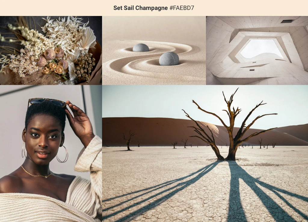 Были проанализированы самые скачиваемые снимки 2020 года, а затем выявлены цвета, популярность которых стремительно растет. Среди них Set Sail Champagne — выбеленный белый, цвет шампанского, Fortuna Gold — насыщенный золотой, Tidewater Green — глубокий голубовато-зеленый оттенок.